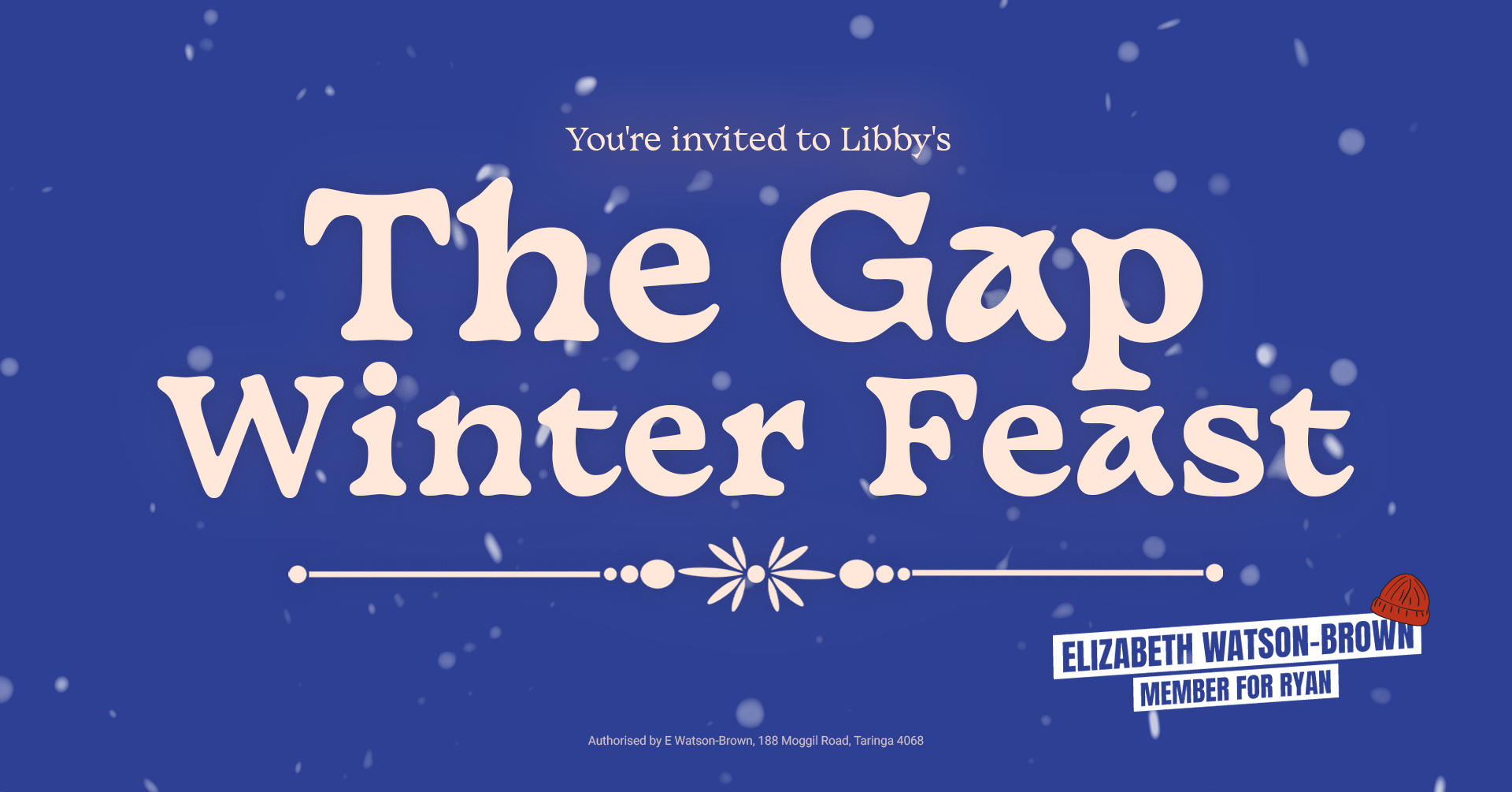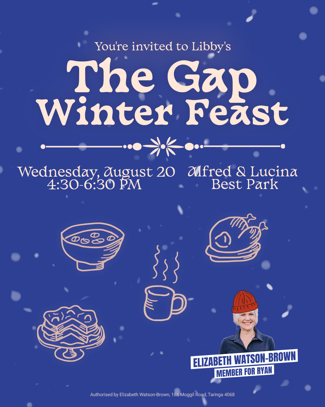 So, to say farewell to winter, I’d like to invite you and your family to our Winter Feast in The Gap. Expect stews and sweets, slow-cooked meats, mulled wines, heaters, blankets and festive music. As always, we will have vegetarian and gluten-free options too.